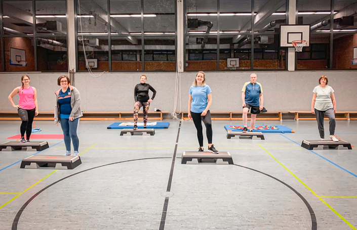 Aerobic ist ein dynamisches Fitnesstraining in der Gruppe mit rhythmischen Bewegungen zu motivierender Musik. Die Grundelemente sind hauptsächlich Kondition und Koordination. Zusätzlich machen wir auch Kraftausdauerübungen für den ganzen Körper, bei den vor allem die Tiefenmuskulatur gekräftigt wird.